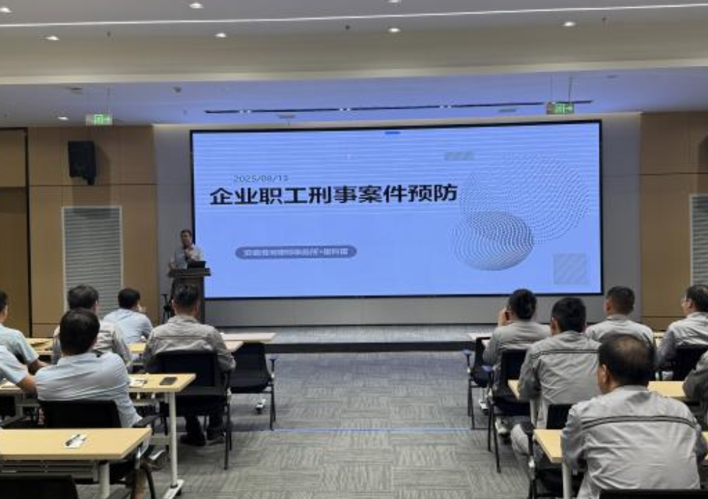 為持續深化企業法治建設,增強全體員工的法治觀念與風險防范意識,特別是防范工作中可能面臨的刑事法律風險,保障公司健康穩定運營與員工個人職業安全。公司于2025年8月13日特邀安徽淮河律師事務所開展“企業職工刑事案件預防”培訓。